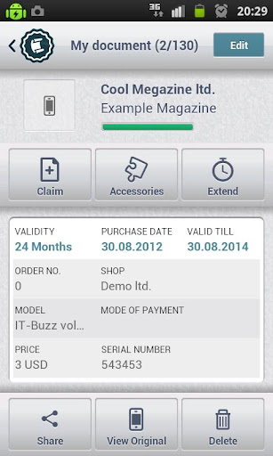 一樣是用來記錄管理保固書資訊 (Install the Purchase Warranty Tracker and never miss using a warranty or guarantee again. All data needed to redeem such claims is stored in one place, including receipts.)